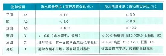 光洁度级别为最小尺寸在9 mm(含9 mm)以上的珍珠为瑕疵(D)。